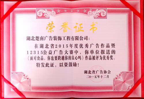 獲獎(jiǎng)作品榮譽(yù)證書